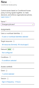 - Une politique d’accès conditionnel dédiée par compte d’urgence